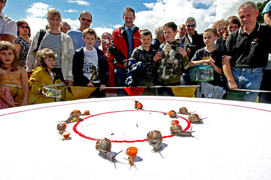 Yet another bizarre sporting event from England, the World Snail Racing Championship consists of, you guessed it, people racing the snail, a terrestrial mollusk known for its intense speed. The snails are placed in the center of a large circle and race outward towards a finish line that circles thirteen inches away from the start. Though this competition is usually an event saved for children, this year’s winner is Dale Thorne, a 31 year-old man, who appears to have a true passion for the sport.