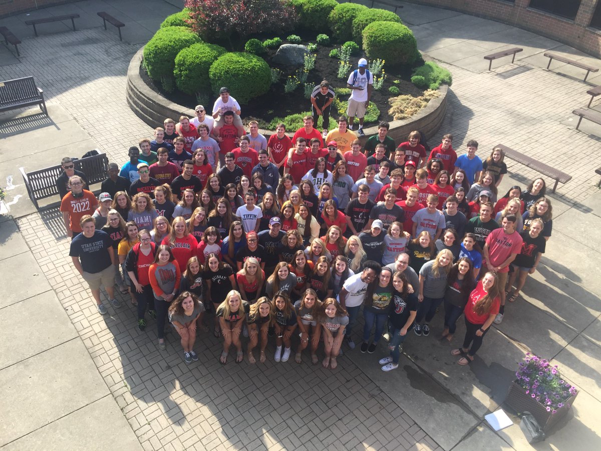 Thursday was College Day. This means that the students wore a shirt or sweatshirt of the college they are attending in the fall. They took time out of the day to take pictures in the courtyard together. This is a day for them to remember since it is their last real day at Bellbrook.