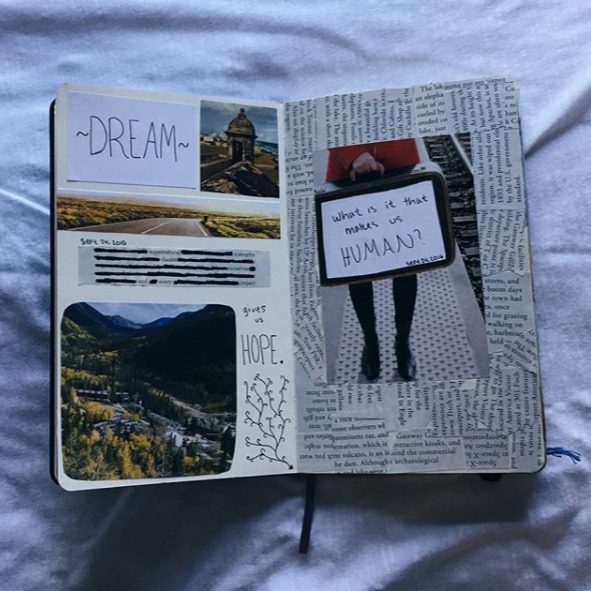 Simply searching up the words “art journal” on any social media site can lead to mass amounts of creations, from people all across the world. Every person has a different style and skill level, all leading to a unique end result every time.