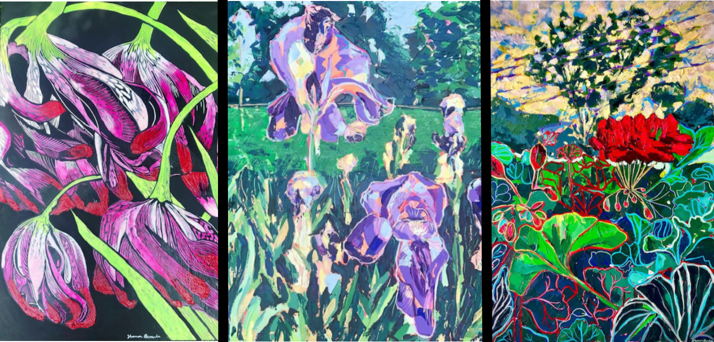 Although very versed in printmaking, Parsons has taken the time to paint as well, including transferring some of her old prints to a painting. “Over the past few years, I’ve spent more time creating painted versions of some of my past prints or collaging prints and paintings together, which usually revolve around nature, leaves and floral imagery,” she said.
