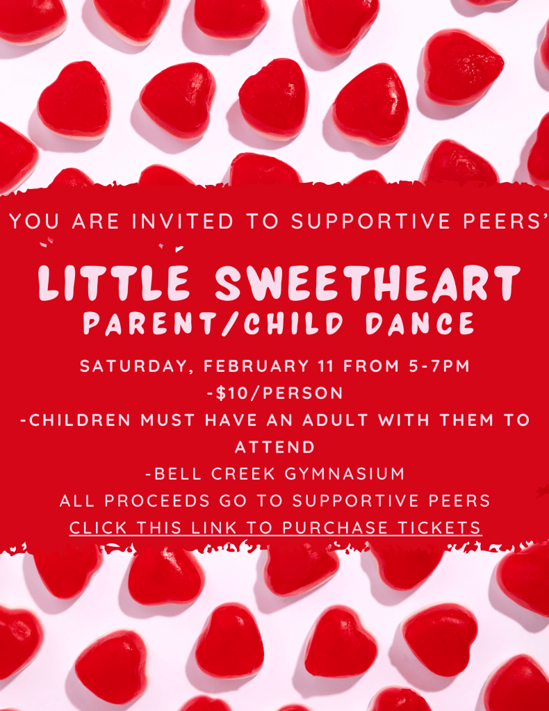 The event will be on February 11 from 5:00 to 7:00 PM in Bell Creek Intermediate gymnasium. All the proceeds will go to the Supportive Peers organization. Tickets are $10 per person. The dance is geared towards pre-K through 5th graders and their parents.