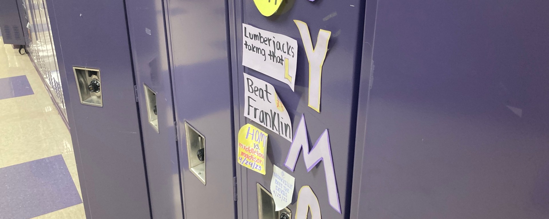 Lockers display homemade signs of positivity and confidence for their owners. Athletes share their experiences from their sport with their partners to help them succeed.
