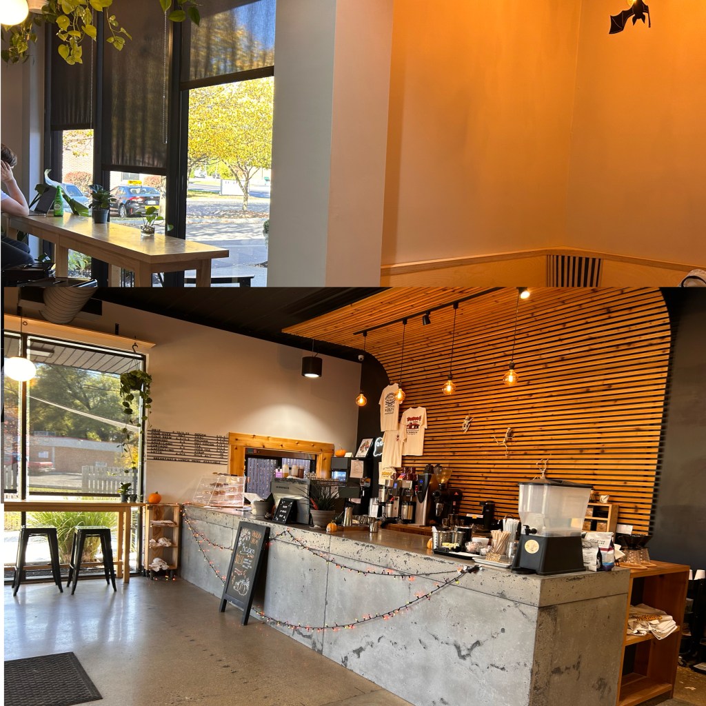 The cafe was clean and cute. The space is split into two sections, a front by the counter and a quieter back area. There is lots of room for people and even some tables for bigger groups of people to work. The music that they played was relaxing and good for studying if you don’t have headphones. The customer service was nice and fun. The drinks there are phenomenal. I got a cold brew and it was a 10/10 for me. The other drinks were just as good and they even do cute designs for lattes. My overall experience was amazing. I was productive and calm.