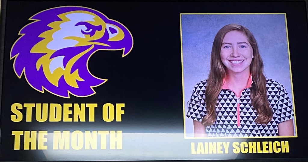 “I was very honored to be awarded student of the month,” junior Lainey Schleich said. “I greatly appreciate the teachers for choosing me. Their very kind and heartfelt description made me feel very ecstatic and proud.”