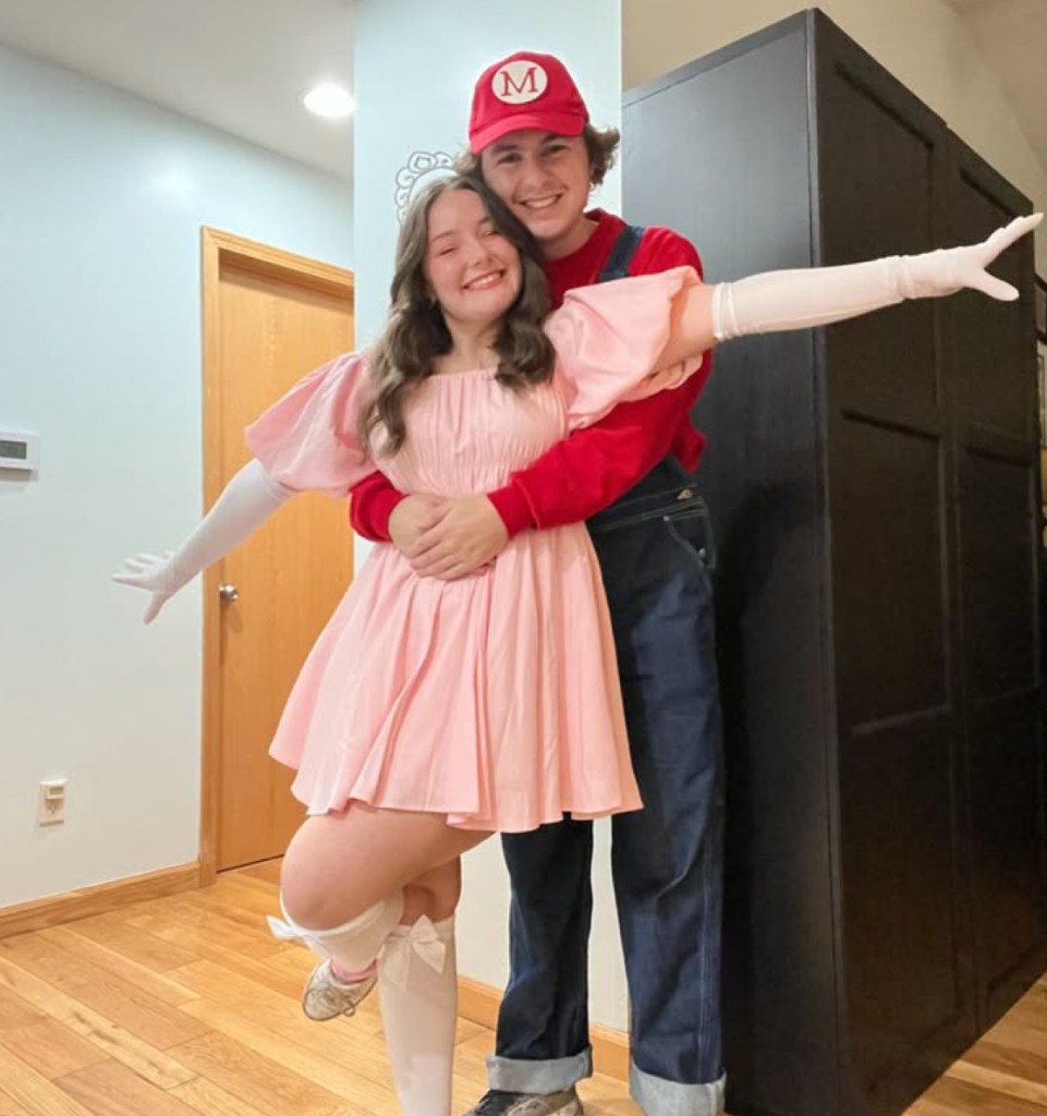Princess Peach and Mario are also two easy costumes to put together with clothes you probably already have. To dress up as Mario, wear a red shirt, red hat and a pair of overalls. You can also use eyeliner to draw on a mustache or buy a stick-on from a store. Princess Peach can wear a pink shirt, white skirt, or pink dress. Add white boots or shoes and a little pink tiara that could be found in the kid’s section or any store to finish the look.