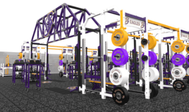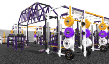The new weight room is going to be an 80′ x 100′ building. It will be a wood framed building wrapped in brick. It will be in the grassy area to the south of the engineering rooms and current wrestling room. The current weight room is going to be the wrestling room, and the current wrestling room will become storage.